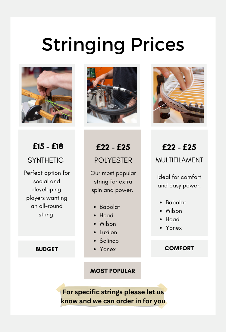 Additionally you can also contact us or book a restring and there will be no additional charge!